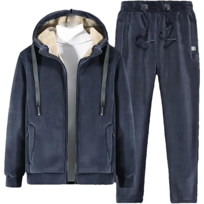 2 Pieces Sets Tracksuit Men Autumn Winter Thick Hooded Sweatshirt Coat+Pants Male Fleece Thick Sets
