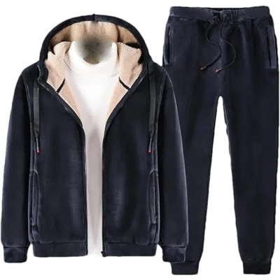 Men Winter Casual Hoodies+Pants Set Hooded Clothes Thick Sportswear Warm Fleece Tracksuit Mens Warm Sets