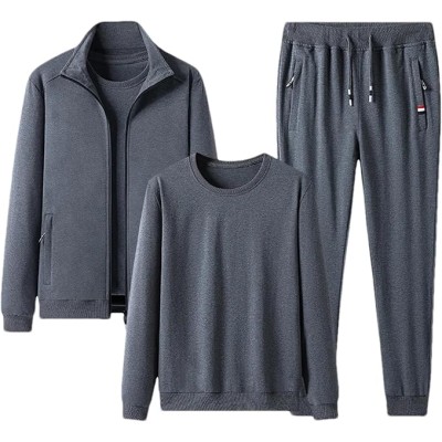 Cotton Tracksuit Men Casual Mens Three Piece Round Neck Sweatshirt Set Streetwear Spring And Autumn Men Set