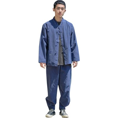 Modern Hanbok Man Woman Daily Comfortable Clothes 100% Cotton Washed Casual V-Neck Jacket and Pants Set NAVY 10042