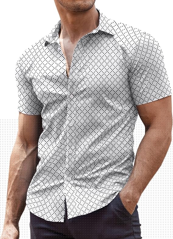 Men's Muscle Fit Dress Shirts Wrinkle-Free Short Sleeve Casual Button Down Shirt