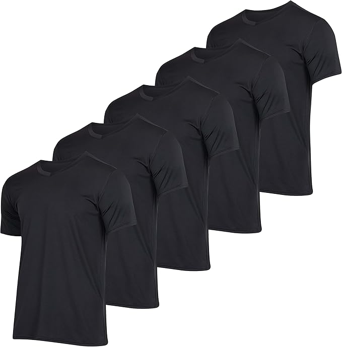 5 Pack: Men’s V-Neck Dry-Fit Moisture Wicking Active Athletic Tech Performance T-Shirt