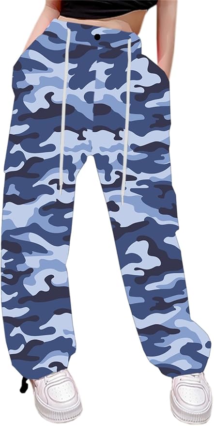 Girls & Womens High Waist Parachute Pants Y2K Waterproof Cargo Trousers with Pockets 6 Years-Women 3XL