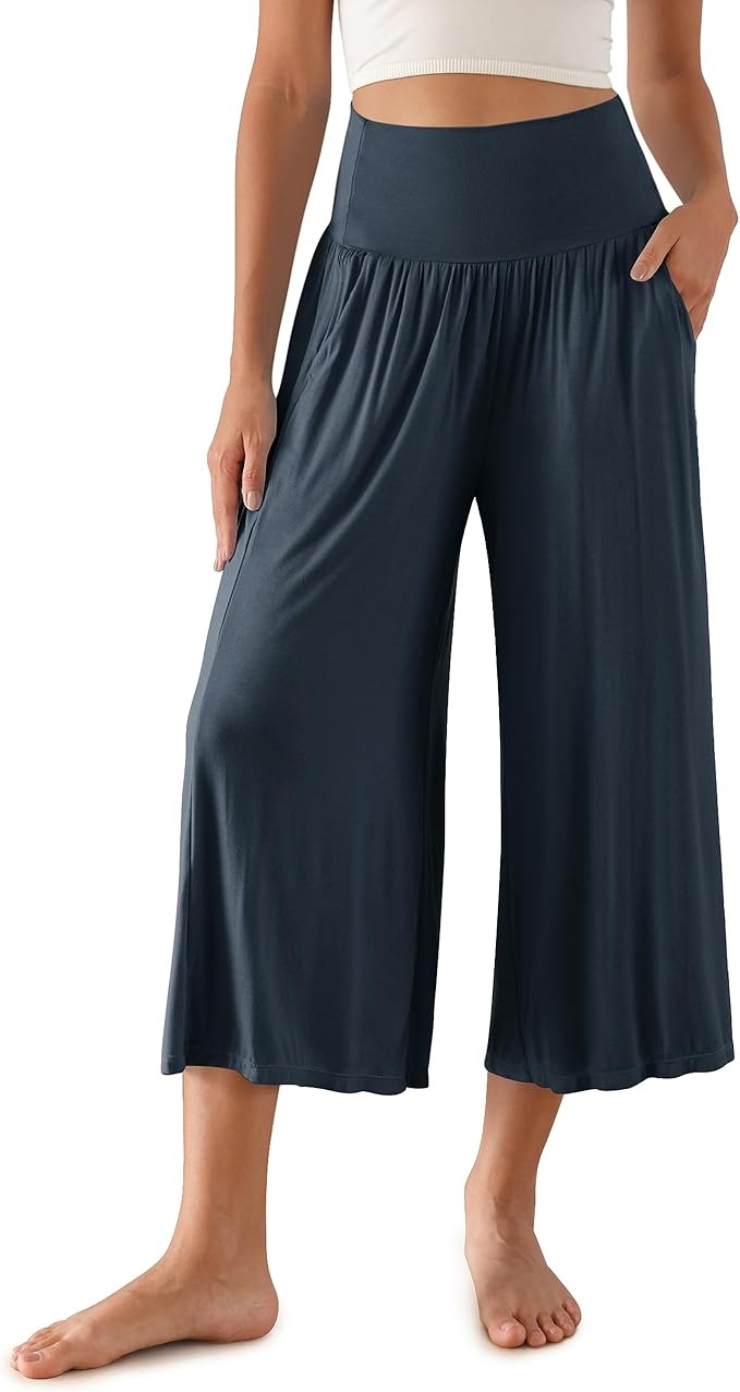 Women's Wide Leg Palazzo Lounge Cropped Pants with Pockets Light Weight Comfy Pajama Capri Pants-20/22"/ 24" Inseam