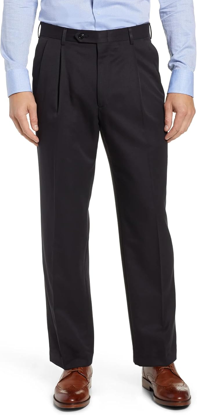 Men's No Iron Pleated Dress Pants Expandable Waist Regular Fit Premium Comfort Slacks