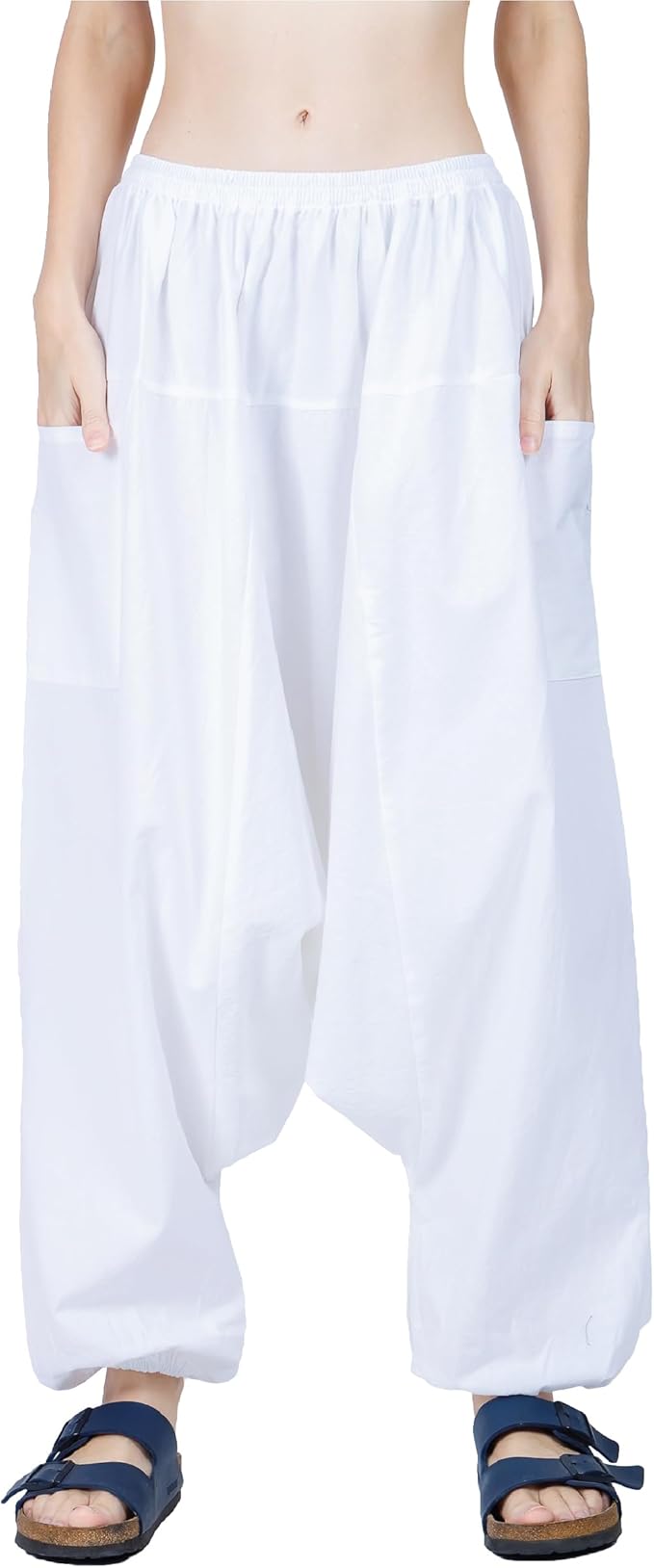 Women's Cotton Harem Pants with Pockets - Casual Elastic Waist Boho Pants, Soft Comfortable Travel & Daily Wear