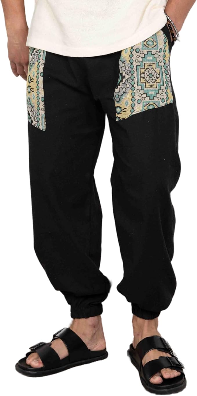 Mens Linen Pants Yoga Beach Loose Fit Casual Summer Elastic Waist Drawstring Baggy Trousers with Pockets