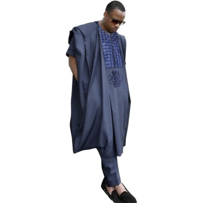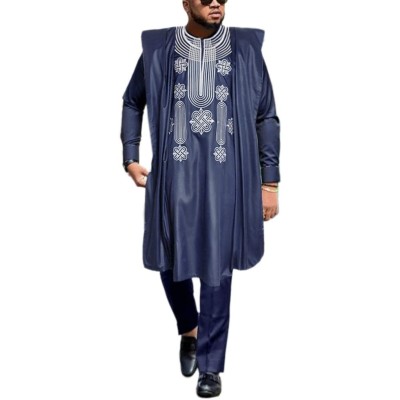 African Mens Apparel Agbada Clothing Embroidery Dashiki Shirts and Pants Outfits 3 Pieces