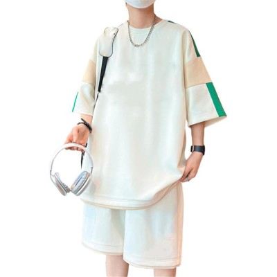 Men's T-shirt 2-piece suit summer Hong Kong style loose casual sports shorts set