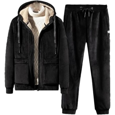 Men's Lamb Wool Tracksuits Zip Up Coat Thick Hoodies + Pants Set Sportswear Winter Sweatshirt Fleece Jacket