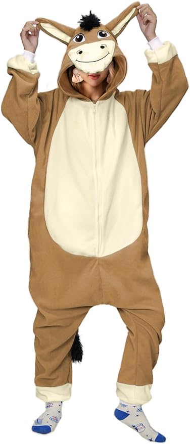 Unisex Adult Donkey Onesie One Piece Pajamas Animal Plush Halloween Christmas Costume for Women men