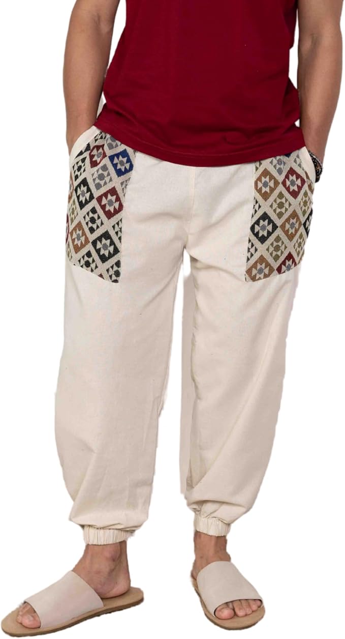 Cotton Pajama Yoga Harem Pants for Women Men, Boho Baggy Casual Lounge Trousers with Pockets and Elastic Drawstring Waist