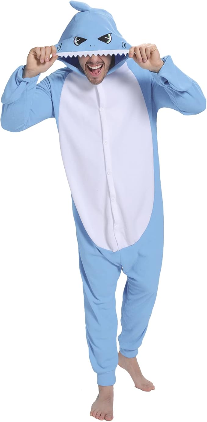 Shark Pajamas Adult Animal Cosplay Costume Shark One Piece Cartoon Homewear Sleepwear Shark Onesie for Women Men