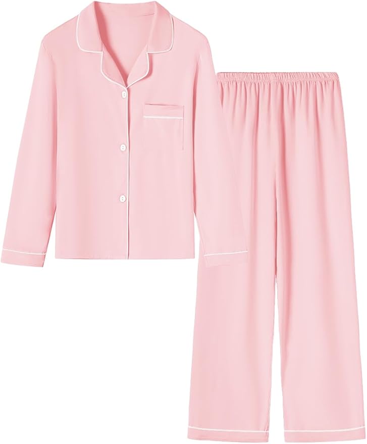 Girls & Women Pajamas Set Long Sleeve Button-Down Sleepwear Nightwear Soft Pjs Set Loungewear