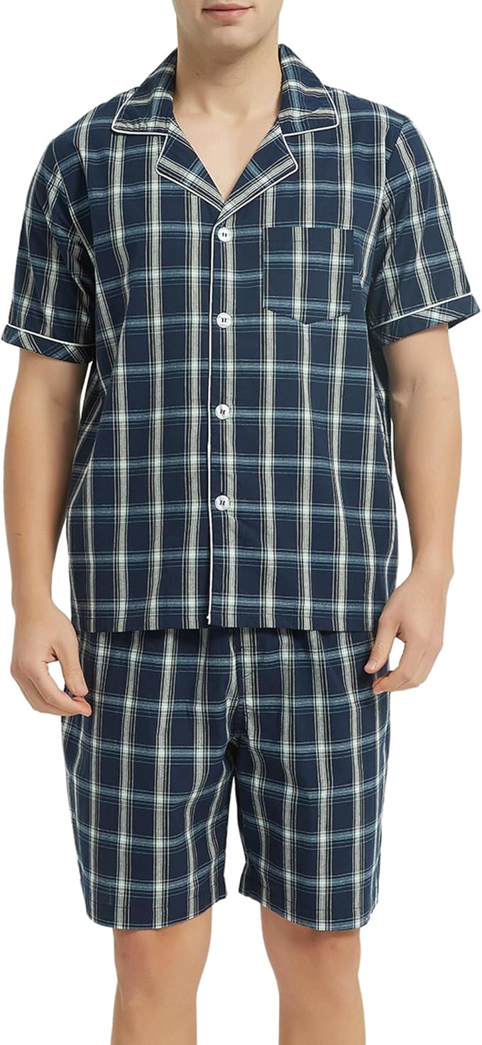 Mens Cotton Pajama Set Short Sleeve, Button Down Pajama Set for Men Lightweight Men's Sleepwear