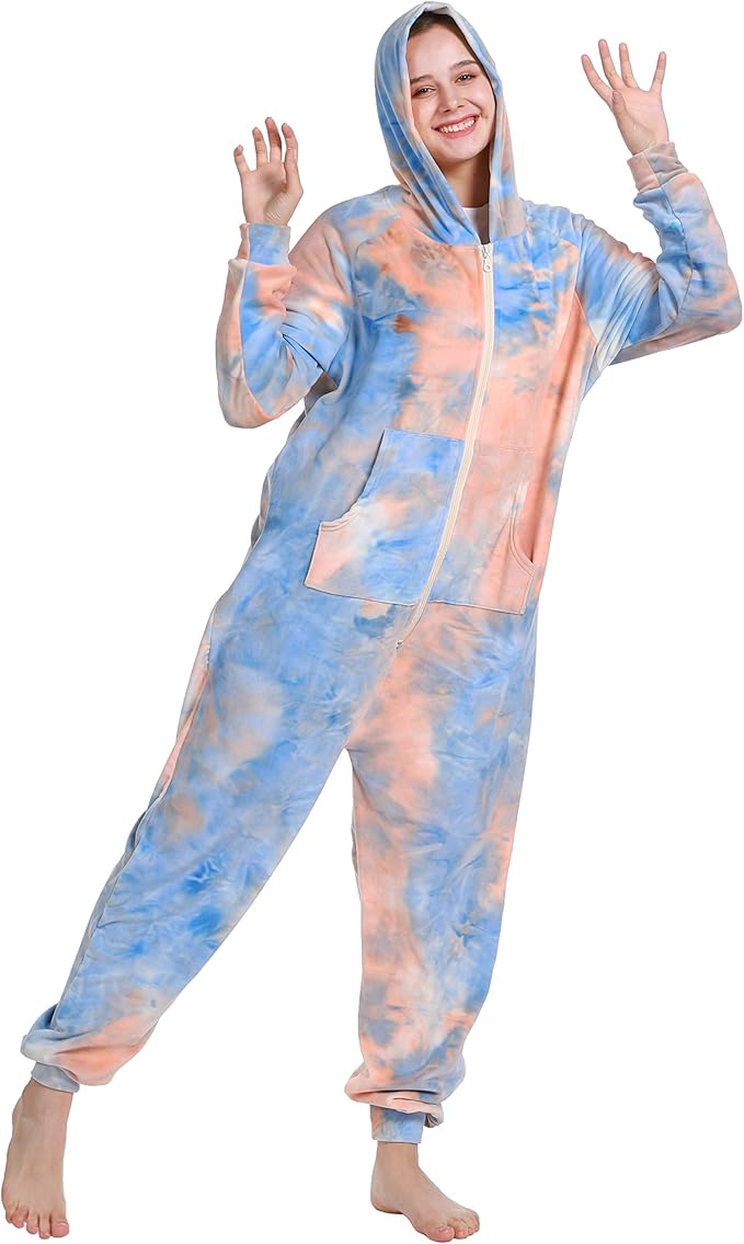 Adult Jumpsuit Pajamas Hoodie Homewear Romper Sleepwear Tie Dye Costume for Women Men