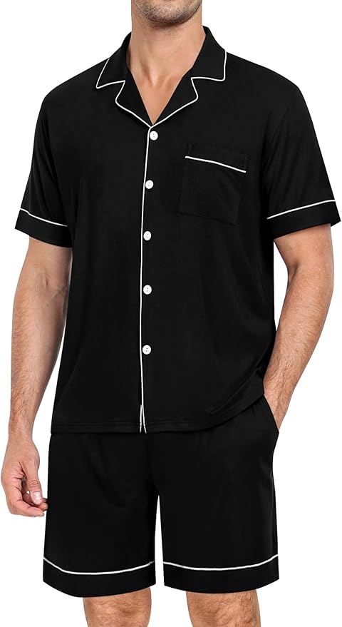 Mens Pajama Set Short Sleeve 2 PCS Sleepwear Button Down Soft Loungewear Modal Set Pj Set with Pockets S-3XL