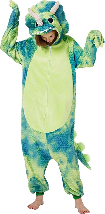 Unisex Tie-dye Triceratops Dragon Onesie Costume Pajamas,Halloween Cosplay Costume Christmas Pajamas Hooded Zipper