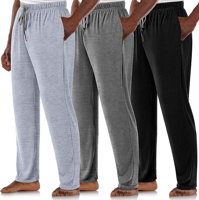 3 Pack Mens Cotton Sleepwear Pajamas Pants with Pockets Soft Sleep Lounge Bottoms Sleep Pj Bottoms for Men