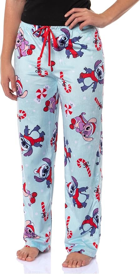 Disney Lilo & Stitch Christmas Pajama Pants - Stitch & Angel Elastic Adult Sleep PJ Loungewear for Men and Women