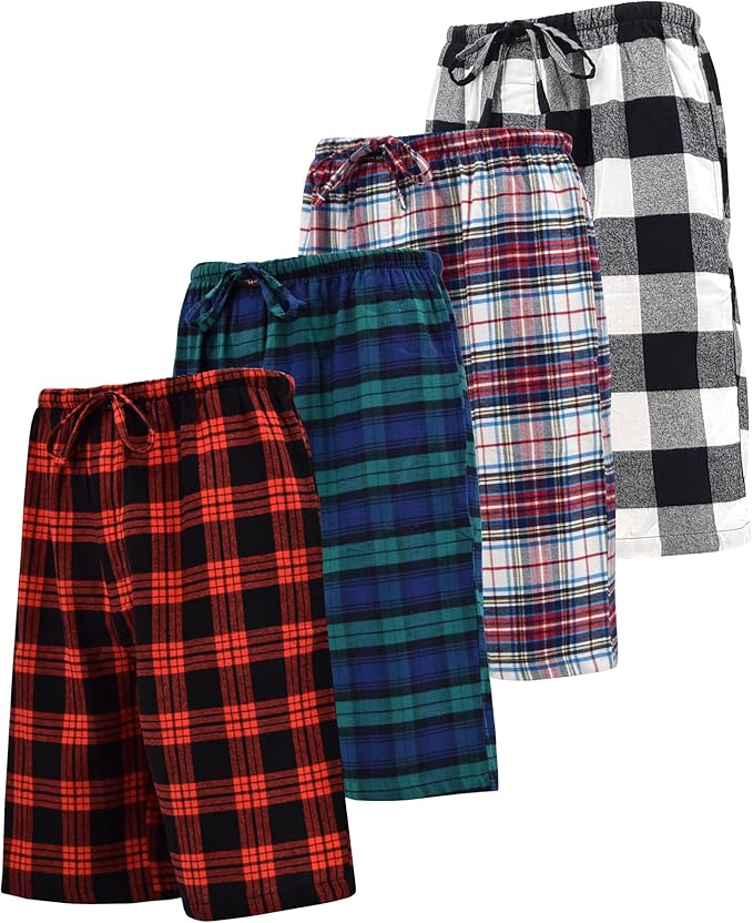 Men's Cotton Flannel Soft Woven Lounge PJ Shorts | Drawstring & Pockets | Multi Packs