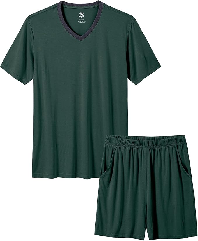 Mens Pajama Set Summer Pjs Sleepwear Nightwear Lightweight Quick Dry Soft Short Sleeve V-Neck Pjs Sleep Set With Pocket
