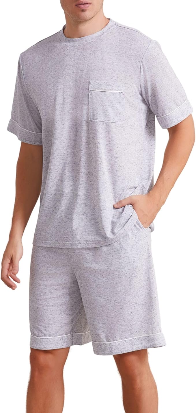 Men's Pajama Sets 2-piece Lounge Sleep Sets Soft Comfy Sleepwear Men Short Sleeves and Shorts Pjs Set with Pocket