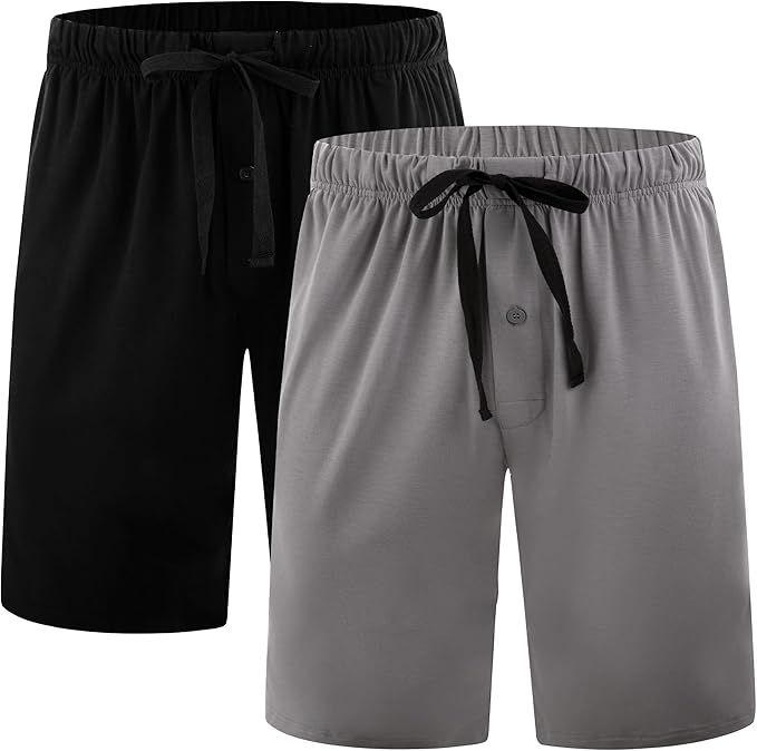 Men's Pajama Shorts Soft Comfy Sleep Bottoms 2 Pack Casual Lounge Sleepwear Pants with Pockets