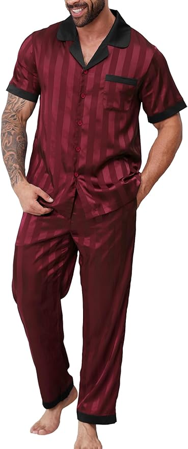 Mens Pajamas Set Satin Silk For Men Sexy Nightwear Sleepwear Long Pants Button Down Pajama 2 Piece