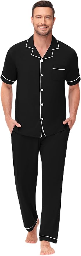 Men Pajamas Set Two Pieces Short Sleeve Sleepwear Button Down Loungewear Set Soft Modal Pj Set with Pockets