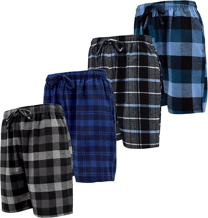 Men's Cotton Flannel Knee Length Shorts | Drawstring & Pockets Boxer Sleep Shorts | Multi Packs