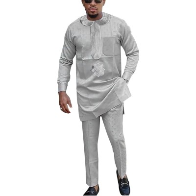 Mens African Clothing Embroidery Bazin Riche Man Dashiki Outfit