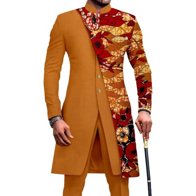 African Suits for Men Slim Fit Single Breasted Print Blazer and Pants Set Business Dress Suit