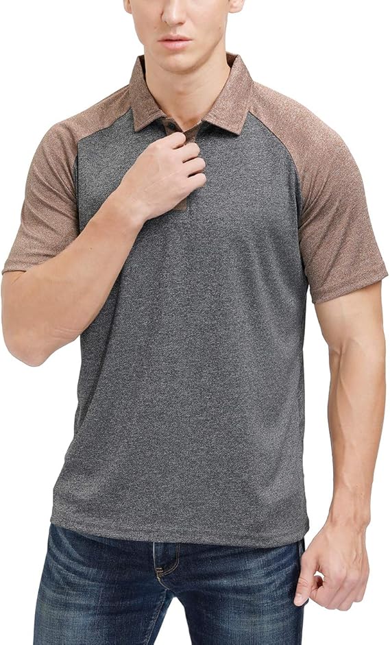 Men's Casual Short Sleeve Moisture Wicking Performance Golf Polo Contrast Color Patchwork Pique Shirts Tops
