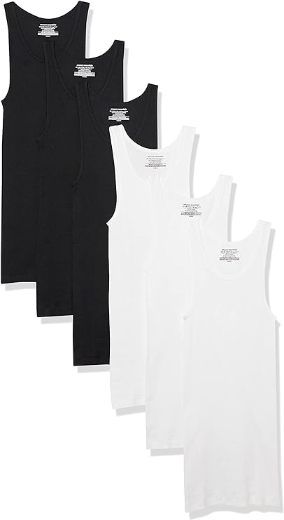 Men's Cotton Tank Undershirts Pack, Moisture-Wicking Ribbed Tanks, Lightweight Cotton Tank Undershirts, 6-Pack