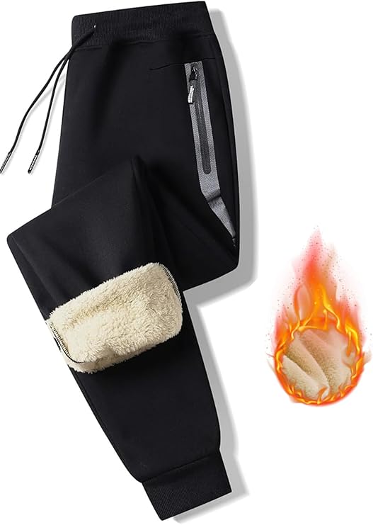Mens Winter Warm Fleece Pants Sherpa Lined Sweatpants with Pockets