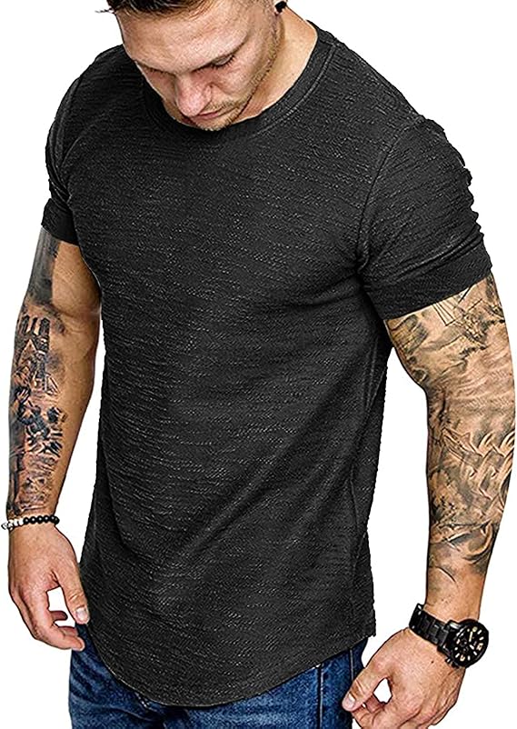 Men Muscle Workout T Shirt Gym Bodybuilding Active Short Sleeve Tee Top Black