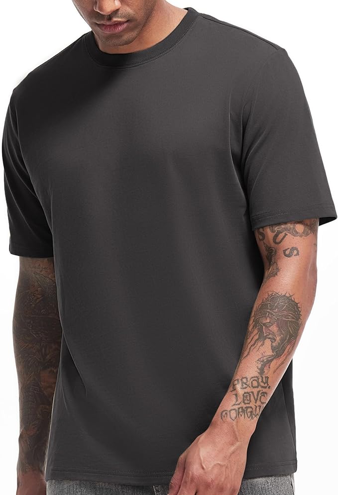 Men's Heavy Weight Crew Neck T-Shirt Mens Premium Cotton Tee - Pre Shrunk S-3XL