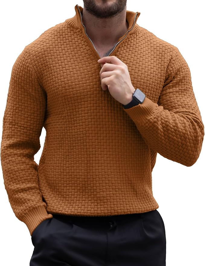 Men's Quarter-Zip Sweater Polo Zip Up Pullover Cable Knit Turtleneck
