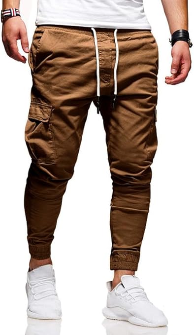 Men's Casual Pants - Cotton Chino Cargo Pants for Hiking and Outdoor Recreation, Drawstring Sweatpants in Twill Track Jogging