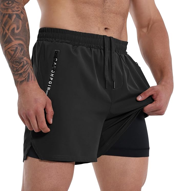 Mens 2 in 1 Workout Shorts Quick Dry Gym Running Shorts Men Sports Exercise Athletic Shorts with Liner