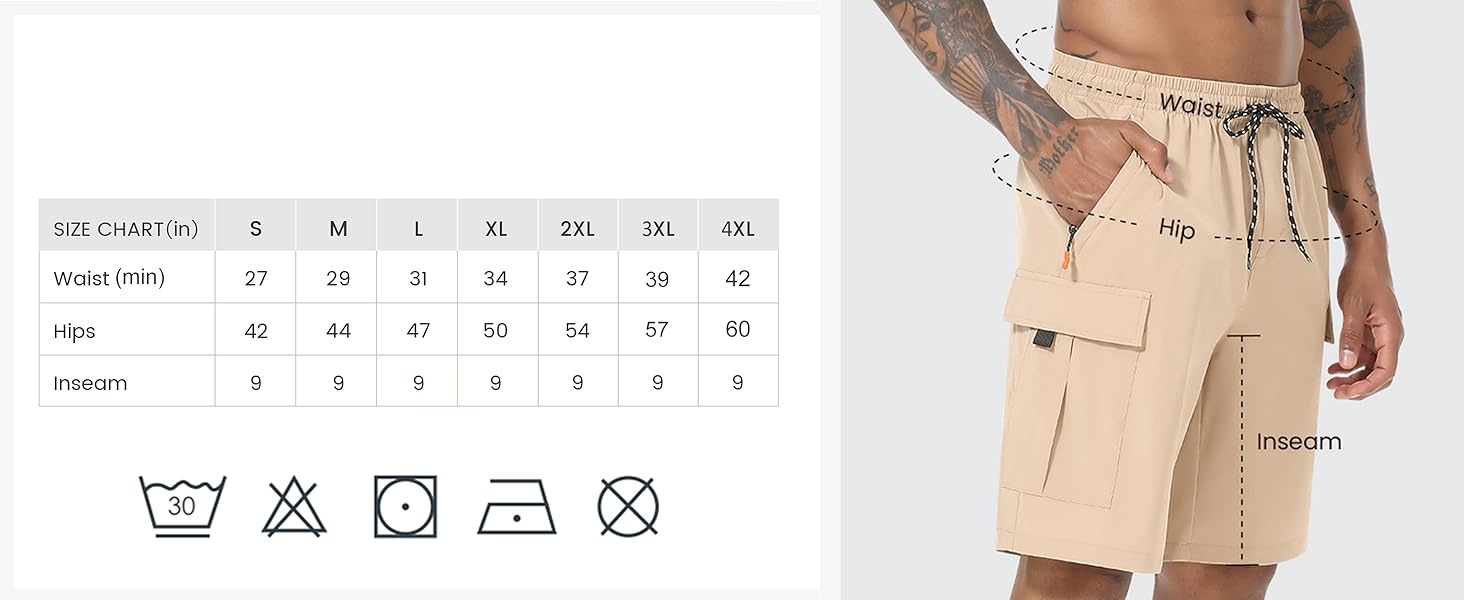Multiple Pockets - With five functional pockets, including two side zipper pockets, two cargo pockets with hook-and-loop closure, and one back zip pocket, these cargo shorts for men are perfect for storing your phone, wallet, keys, credit cards, and other items, making them ideal for outdoor activities, travel, or daily wear.